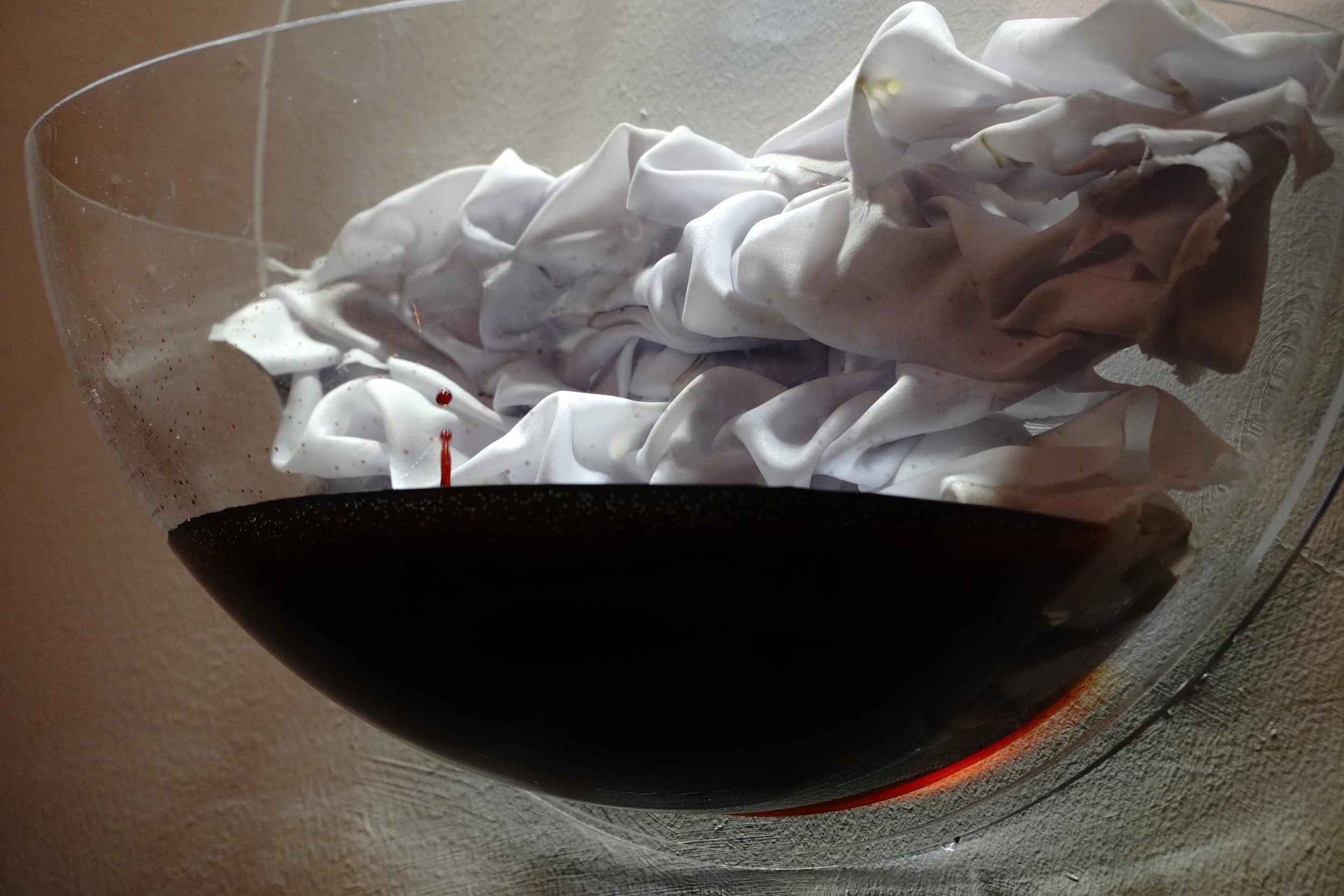 The initial chemistry test was to test which two chemicals could produce a reaction from blue to blood red.